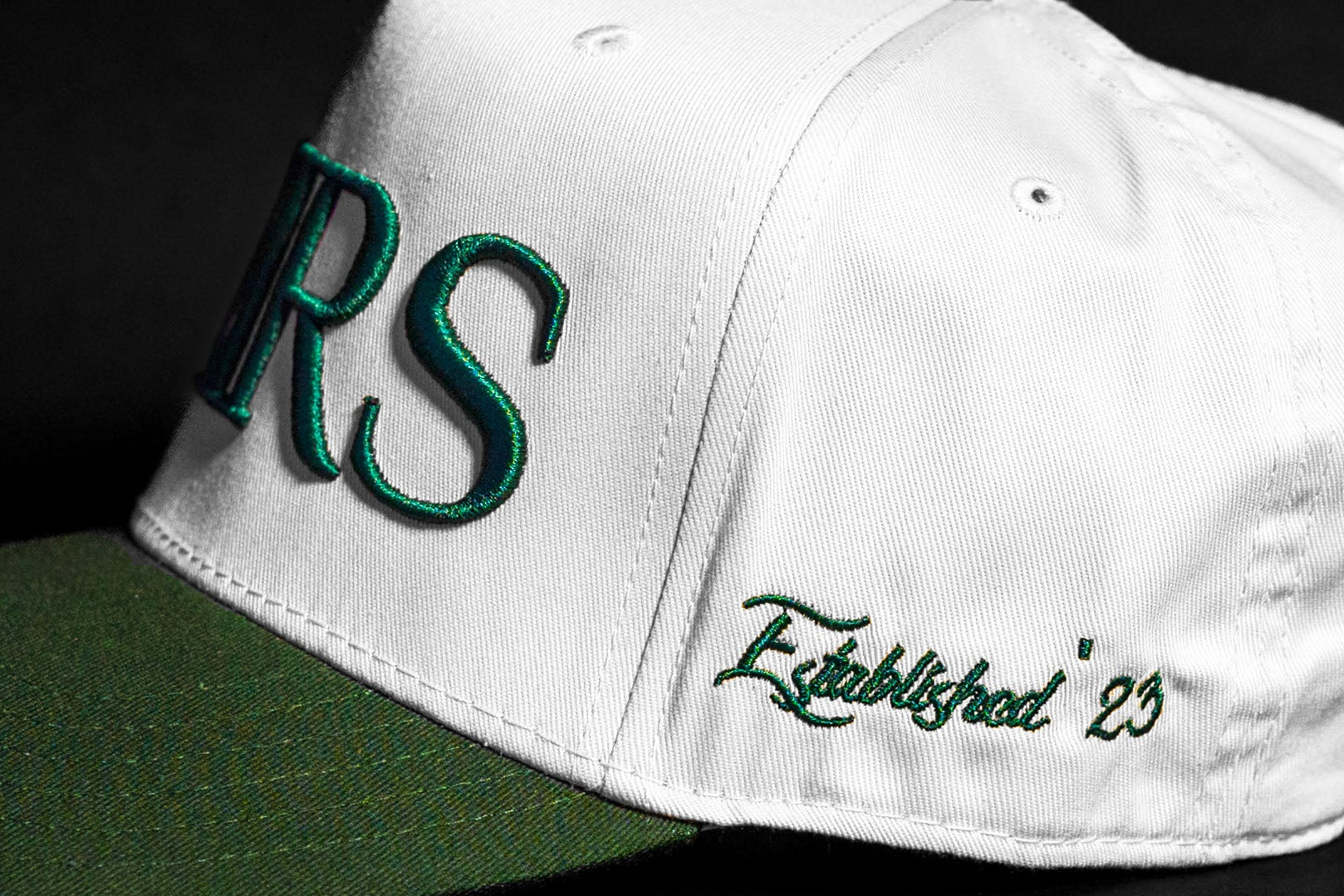 The Heirs & Christ 'HEIRS' Baseball Hat in Cream with Forest Green embroidery features the bold “HEIRS” logo across the front, “Established ‘23” detailing on the side, and “Heirs & Christ” embroidery on the back. Crafted with premium stitching and a structured crown, finished with an adjustable snapback closure for a comfortable, unisex fit.