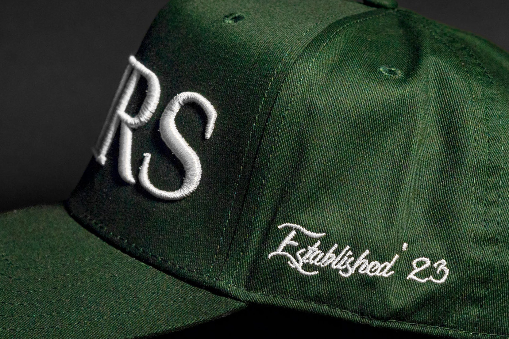 The HEIRS & CHRIST HEIRS Baseball Hat in Forest Green with Off-White embroidery features a raised HEIRS logo across the front, “Heirs & Christ” detail at the back, and “Established 23” stitched along the side. Designed with bold contrast embroidery and a structured crown, this premium snapback delivers a standout, unisex fit built for everyday wear.