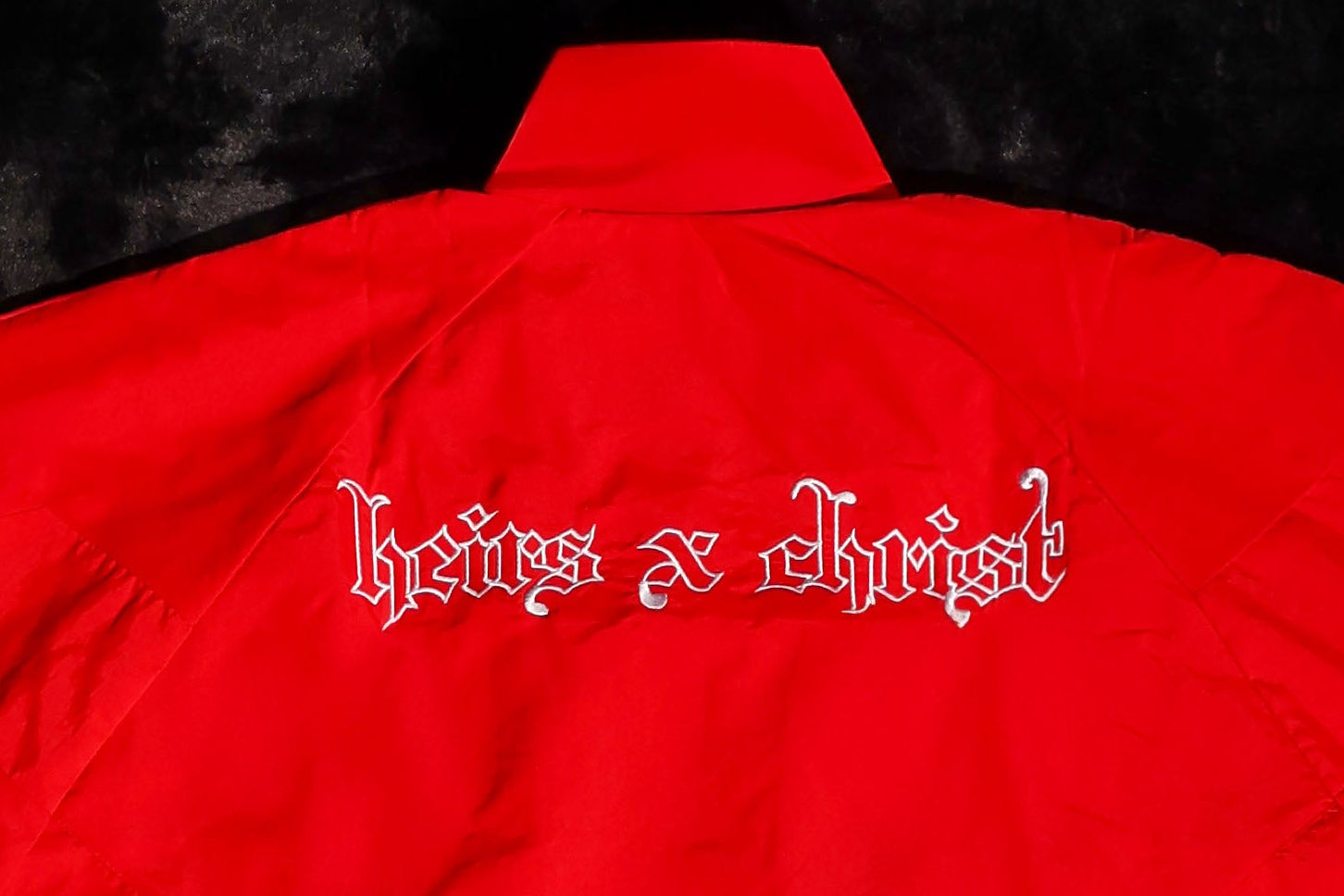 The ‘HC’ Red Track Suit is crafted from premium lightweight nylon with a subtle sheen and a bold, statement finish. This vibrant red set features a white HC monogram at the chest, heritage “Heirs x Christ” script across the back, and matching branded joggers for a sharp, unified look.