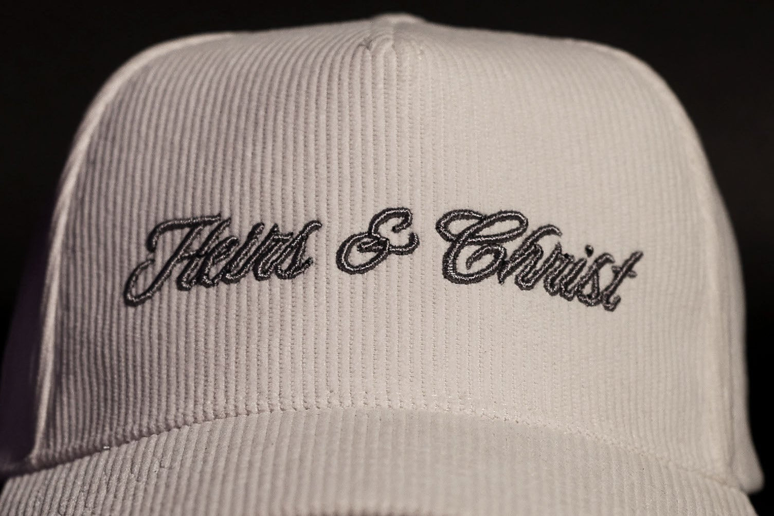 The Heirs & Christ Suede Trucker Hat in cream suede with black embroidery features elegant cursive “Heirs & Christ” lettering across the front. Designed with a soft suede crown and breathable mesh back, this hat brings a clean, elevated finish to any look. Crafted with premium stitching and a structured fit, finished with an adjustable snapback closure for a comfortable, unisex wear.